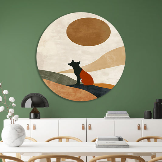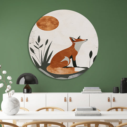 Minimalistische Vos in Rustgevende Aardetinten aluminium muurcirkel