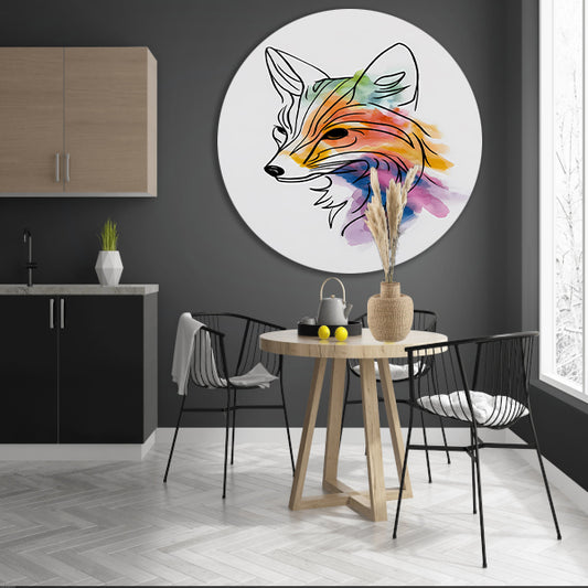 Abstracte waterkleur vos in lijnkunst forex muurcirkel
