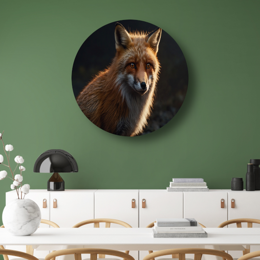 Een vos bij avondlicht in close-up forex muurcirkel