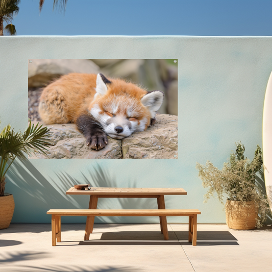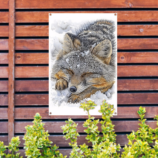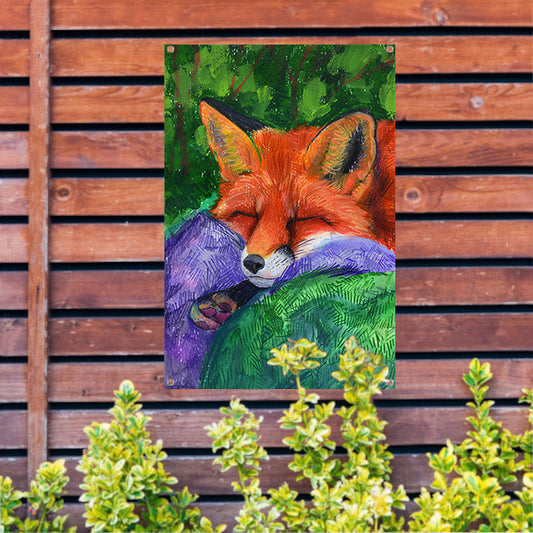 Gedetailleerd schilderij van een slapende vos tuinposter
