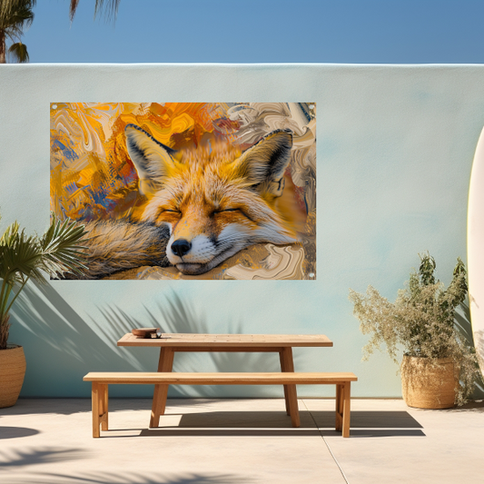 Slapende vos in kleurrijk bos schilderij tuinposter