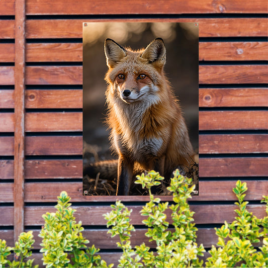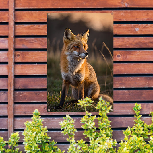 Vos in natuur bij zonsondergang tuinposter