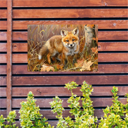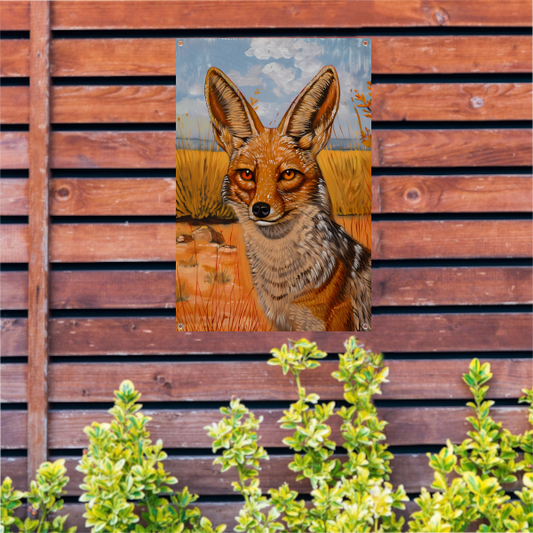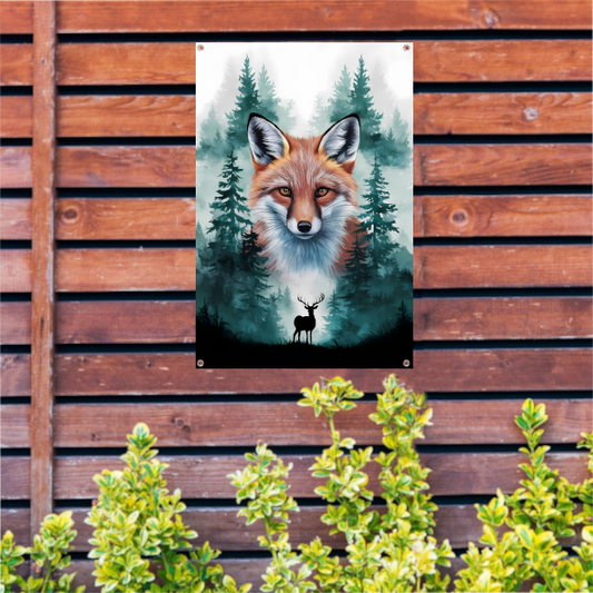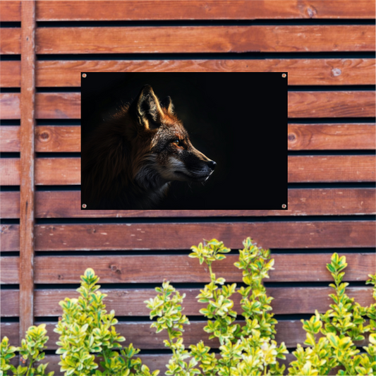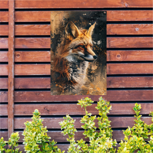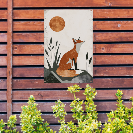 Mysterieuze vos in dynamische rustieke stijl tuinposter