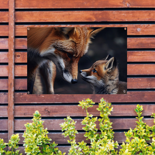 Intiem moment tussen vos en babyvos tuinposter