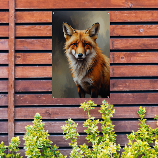 Intense Oogopslag van een Kleurrijke Vos tuinposter