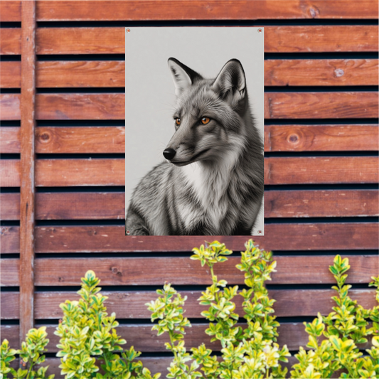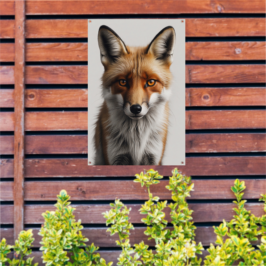 Intens Blikkende Vos in Gedetailleerd Portret tuinposter