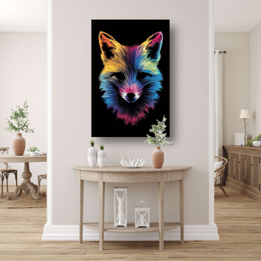 Levendige kleurrijke vos op zwarte achtergrond poster