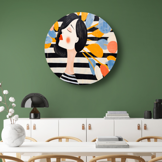 Vrouwelijk Profiel met Natuurlijke Elementen aluminium muurcirkel