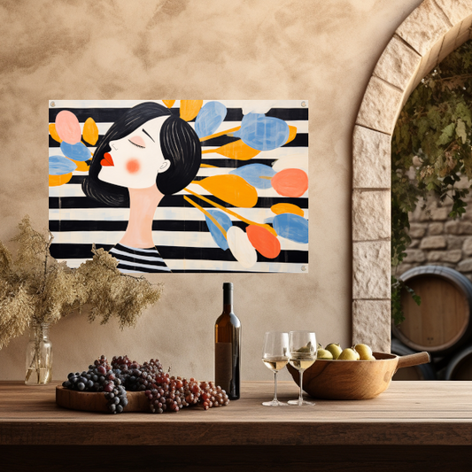 Gekleurde Bloemen op Zwart-wit Strepen tuinposter