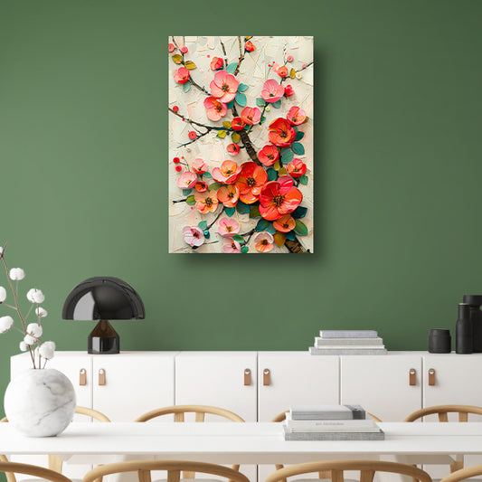 Vrolijke kleurrijke bloemen en takken kunstwerk canvas met baklijst