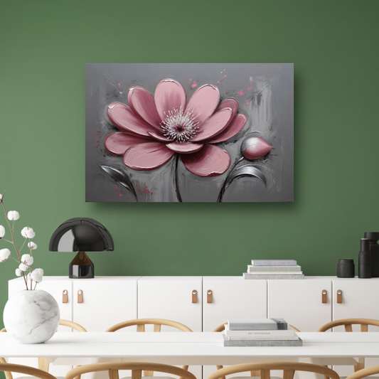 Impressionistische Bloem in Roze en Grijs canvas met baklijst
