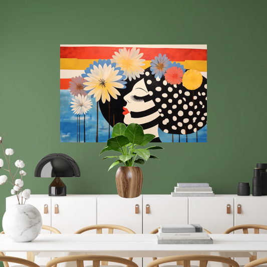 Gekleurde Bloemen op Zwart-wit Strepen poster