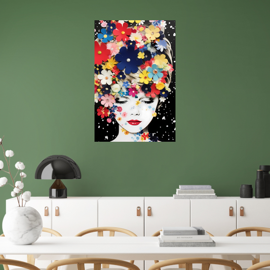 Slapende vrouw en kleurrijke bloemeneplosie canvas