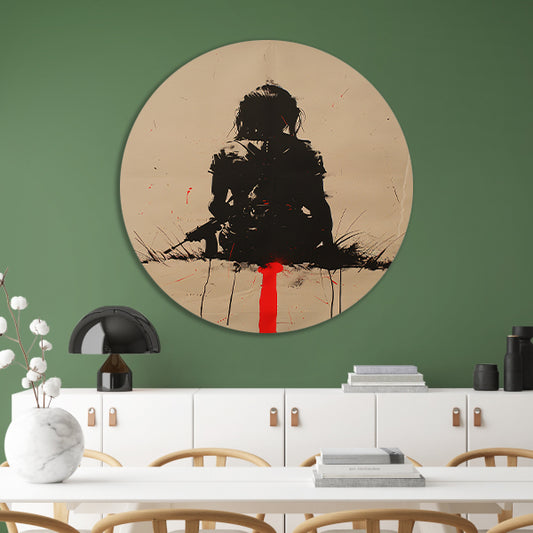 Eenzame vrouwelijke krijger in desolate omgeving forex muurcirkel