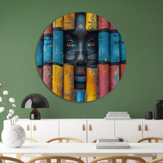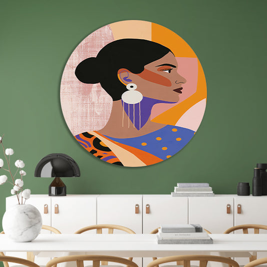 Vrouwelijke Essentie in Expressieve Kleuren aluminium muurcirkel