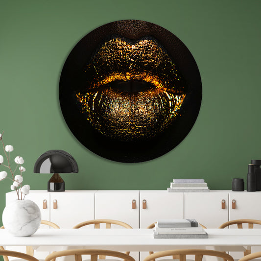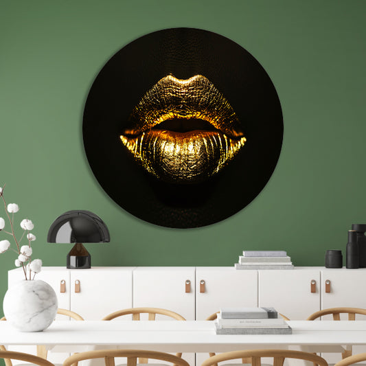Gouden lippen in een oase van donker contrast forex muurcirkel