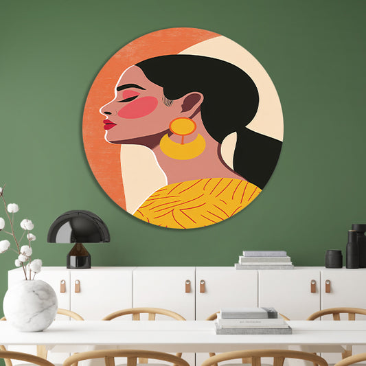 Modern vrouwelijk portret met kleurrijke oorbellen forex muurcirkel
