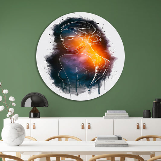 Abstracte Vrouwenfiguur in Lijnen en Kleur forex muurcirkel