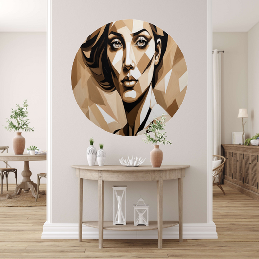 Geometrisch Portret van een Vrouw in Beige forex muurcirkel