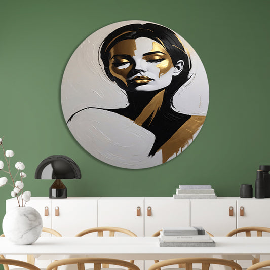 Vrouwelijk Portret in Zwart, Wit en Goud forex muurcirkel