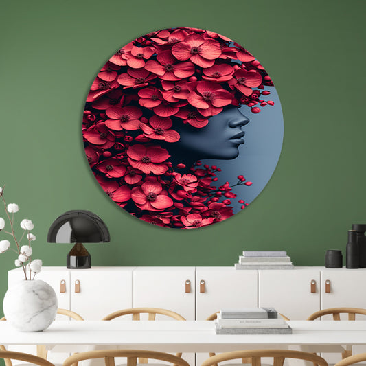 Dromerig portret van vrouw met planten aluminium muurcirkel