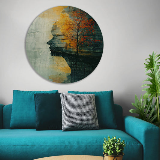 Vrouw met boom in herfstkleuren forex muurcirkel