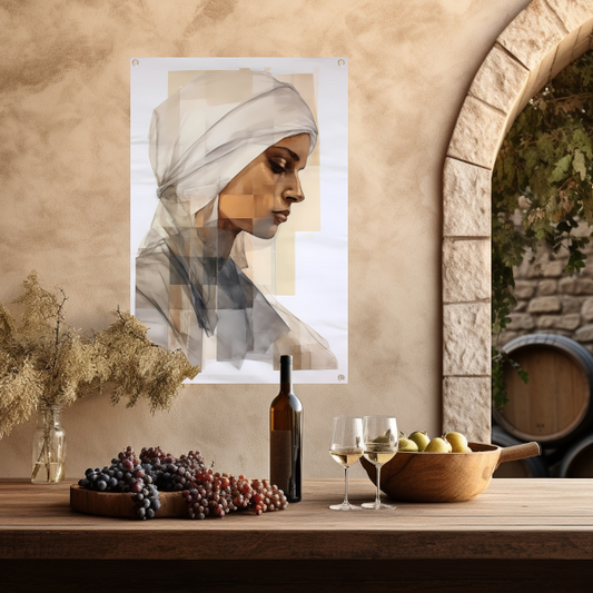 Vrouw in Gedachte met Hoofddoek tuinposter