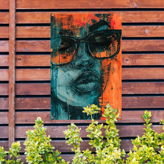 Kleurrijk expressief portret van vrouw met bril tuinposter