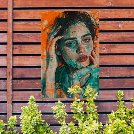Expressieve abstracte vrouw in warme tinten tuinposter