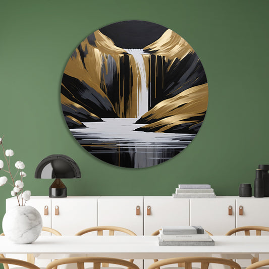 Abstracte Waterval in Gouden Reflectie forex muurcirkel
