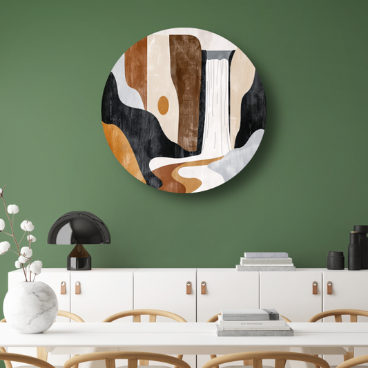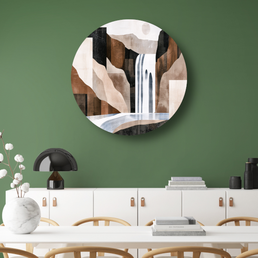 Minimalistische Waterval in Aardetinten Abstract forex muurcirkel