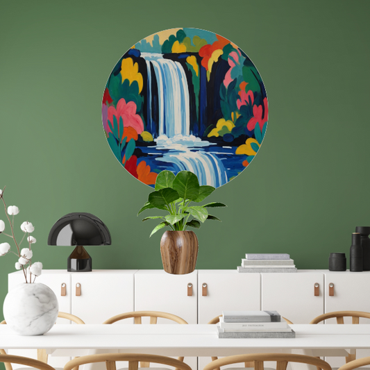 Levendige Expressionistische Waterval met Bloemen forex muurcirkel
