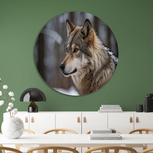 Majestueuze wolf in winterlandschap aluminium muurcirkel