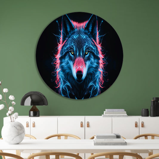 Bioluminescente wolf digitale kunst aluminium muurcirkel