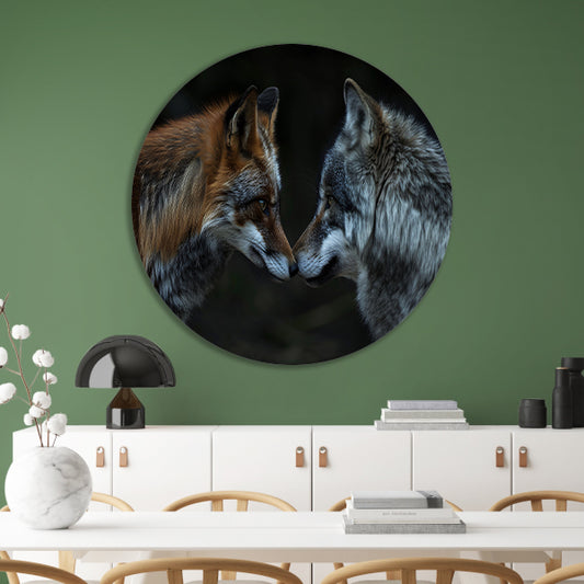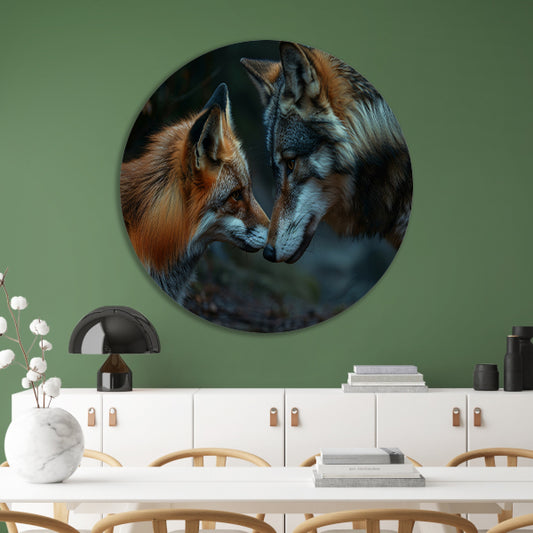Vos en wolf neus aan neus schilderij forex muurcirkel