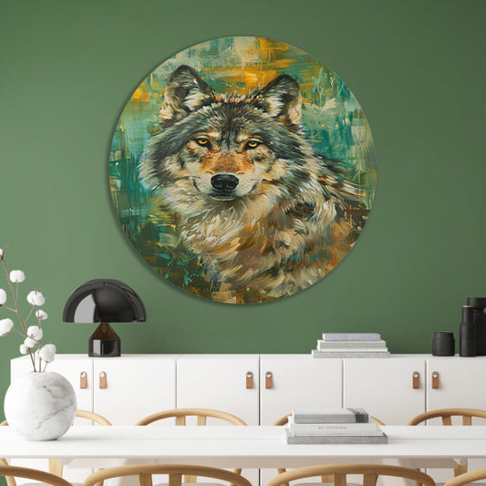 Kleurrijk abstract schilderij van een wolf forex muurcirkel