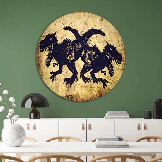 Dinosauriërs in de Nacht aluminium muurcirkel