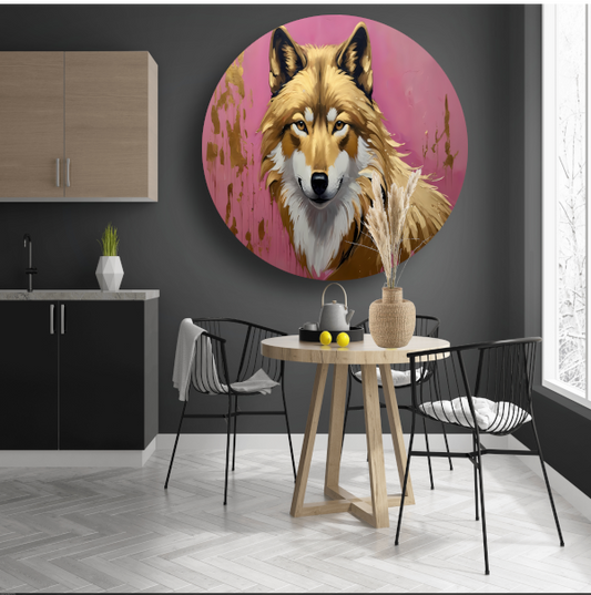 Majestueuze Wolf in Roze en Goudtinten forex muurcirkel