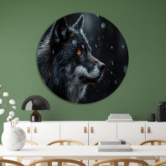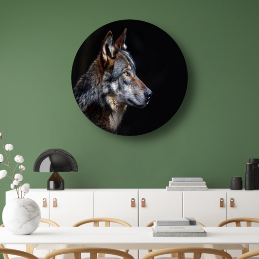 Intense Blik van een Wolf in Duisternis aluminium muurcirkel
