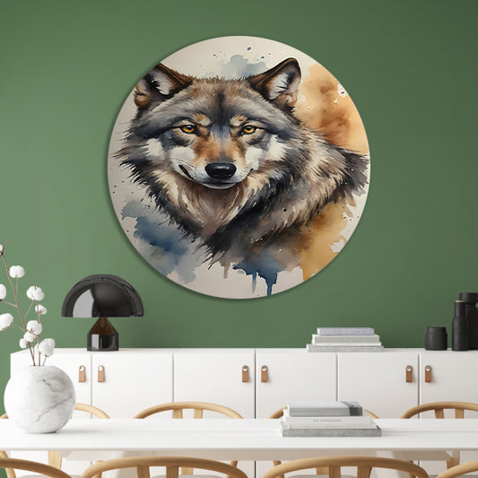 Abstracte Wolf in Levendige Waterverf forex muurcirkel