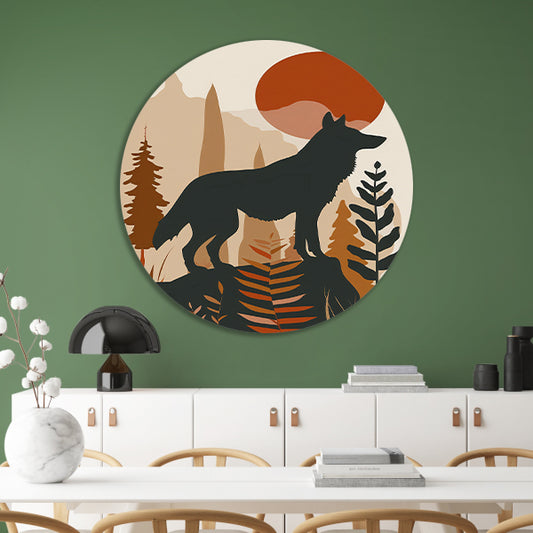 Stilistische wolf met zonsondergang in eenvoudige vormen forex muurcirkel