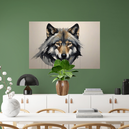 Abstracte Wolf in Kleurrijke Penseelstreken poster