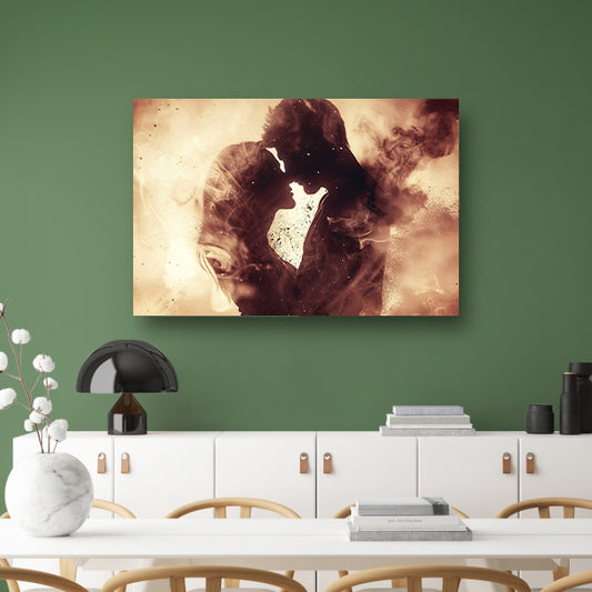 Omarmd Paar in Schemerlicht canvas met baklijst