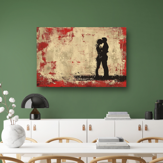 Passie en contrast in abstracte silhouetten canvas met baklijst