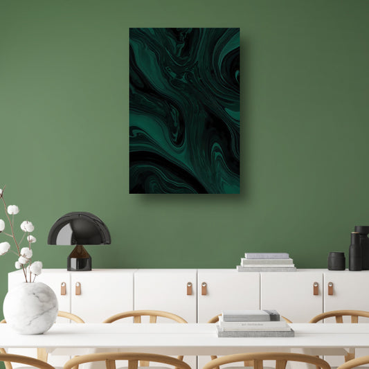 Abstracte Donkergroene en Zwarte Vloeibare Dynamiek canvas met baklijst