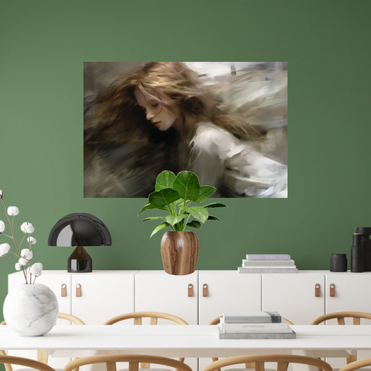 Vrouw in Beweging Bruin Beige canvas met baklijst