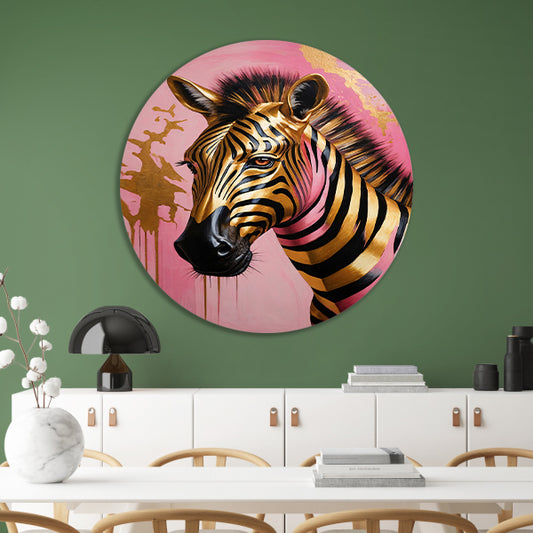 Gouden Zebra met Roze Achtergrond Kunstwerk forex muurcirkel