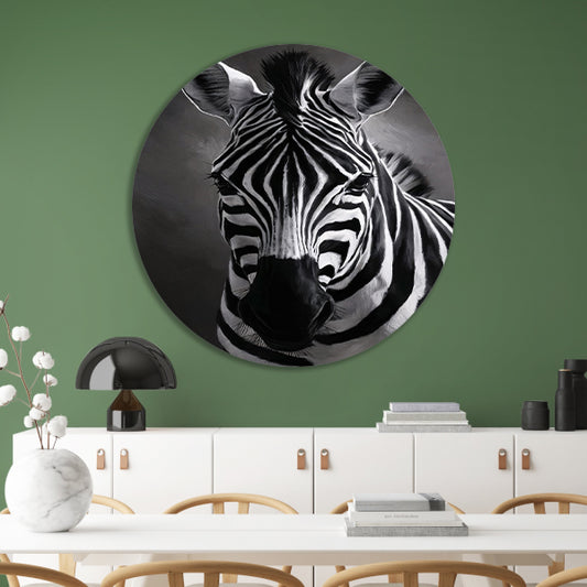 Zebra in Zwart-Wit Monochroom Portret forex muurcirkel