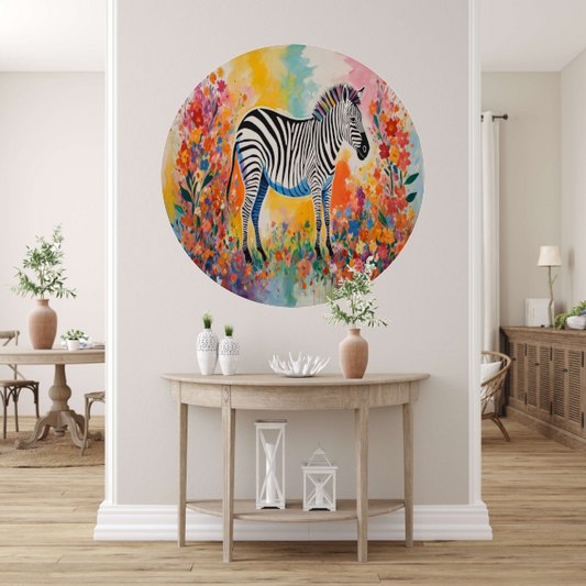 Zebra in Bloeiend Kleurrijk Bloemenparadijs forex muurcirkel