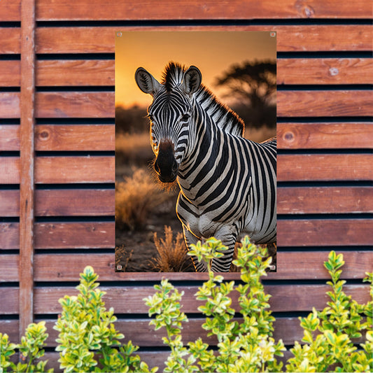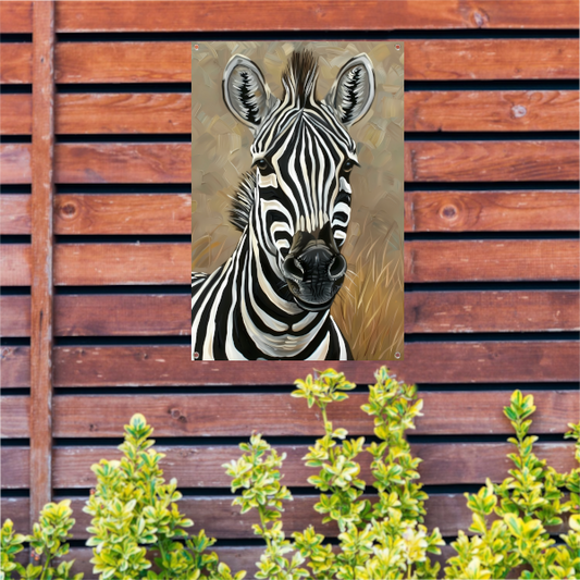 Zebra tuinposters brengen de fascinerende strepen en rust van de savanne naar je buitenruimte. Je vindt realistische scènes met zebra’s in hun natuurlijke omgeving, minimalistische zwart-wit portretten, moderne abstracte ontwerpen met levendige kleuren en artistieke gouden uitvoeringen. Elk ontwerp vangt het unieke patroon en karakter van de zebra op een eigen manier. De posters zijn gedrukt op sterk, water- en vuilbestendig materiaal en hebben metalen ringen in de hoeken, waardoor ze eenvoudig op te hangen zijn aan een schutting, muur of balkon. Ze blijven prachtig van kleur, zelfs bij wisselend weer. Met een Zebra tuinposter geef je je tuin of terras moeiteloos een stijlvolle, opvallende en rustgevende uitstraling.